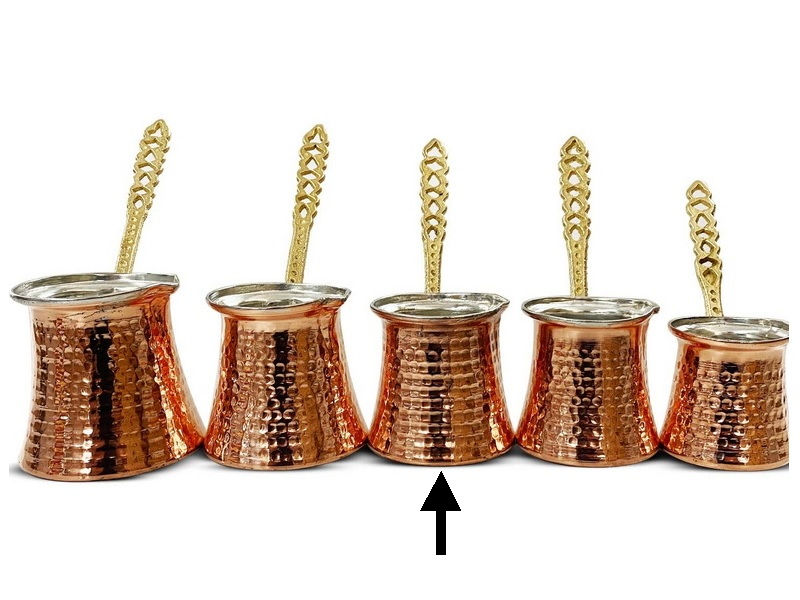 Sehr gutes Kupfergefäss zum Zubereiten von türkischen Kaffee, griechichen Mokka oder auch orientalischem Kaffee. Das Kupfergefäss ist innen mit einer lebensmittelechten Zinnlegierung versehen. Der schöne Messinggriff wird nicht heiss beim kochen. Ideal um Kaffee/Mokka auf kleinen Gaskochern oder auch auf Glut / Feuer zu kochen. Sehr gutes Preis-/Leistungsverhältnis.